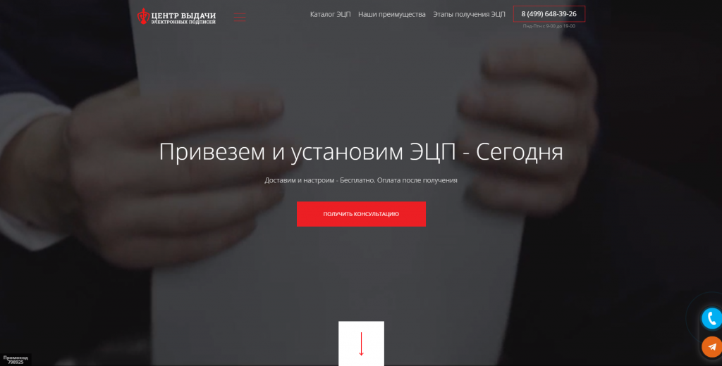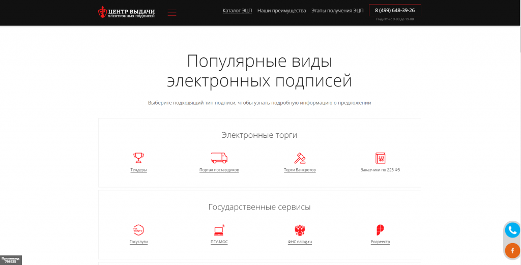 - Работа с внешними факторами: подбор сайтов доноров, на которых размещены информационные материалы, рассказывающие об услугах электронно-цифровой подписи.